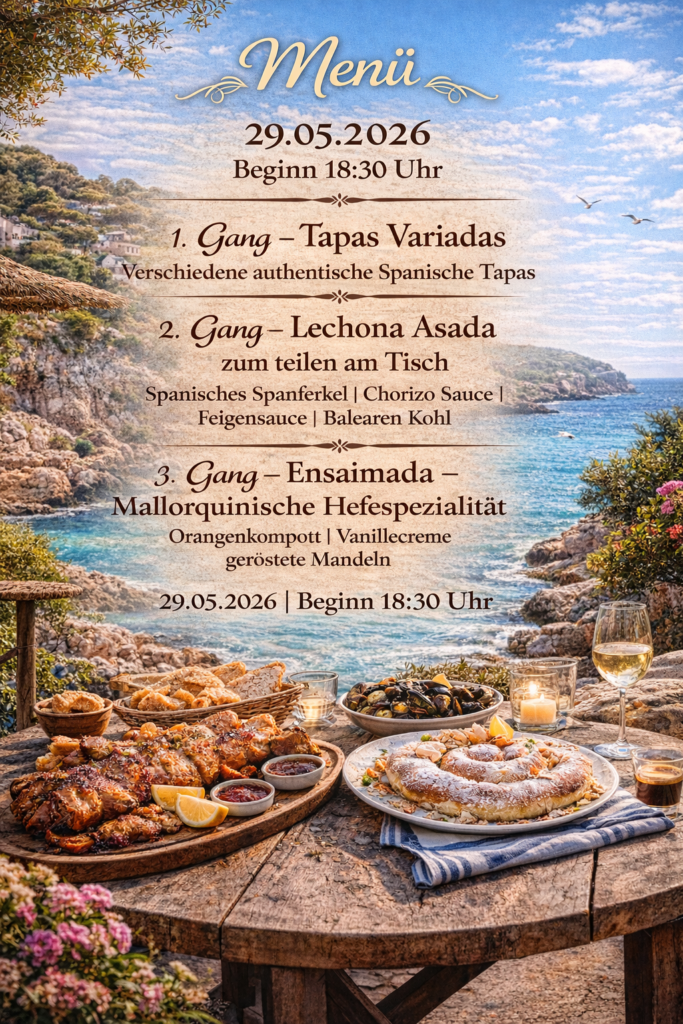 Erleben Sie mediterranes Flair mit Tapas, Spanferkel und Tarta de albaricoques.